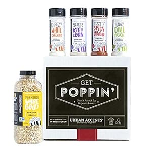 Urban Accents GET POPPIN’, Gourmet Popcorn Seasoning Gift Set (Set of 5) – Delicious Non-GMO Popcorn Kernels and 4…