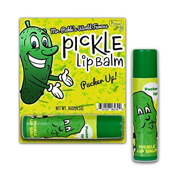 FUNNY GIFT FOR PICKLE LOVERS – This standard size pickle lip balm comes in a green 4.5g tube which features a happy pickle suggesting you “pucker up!”