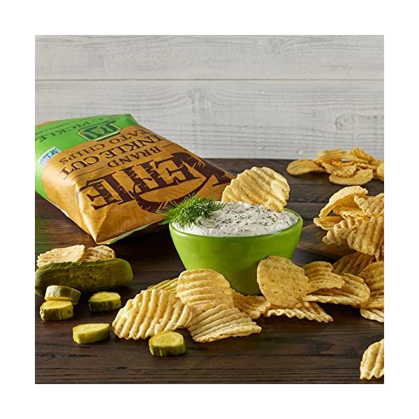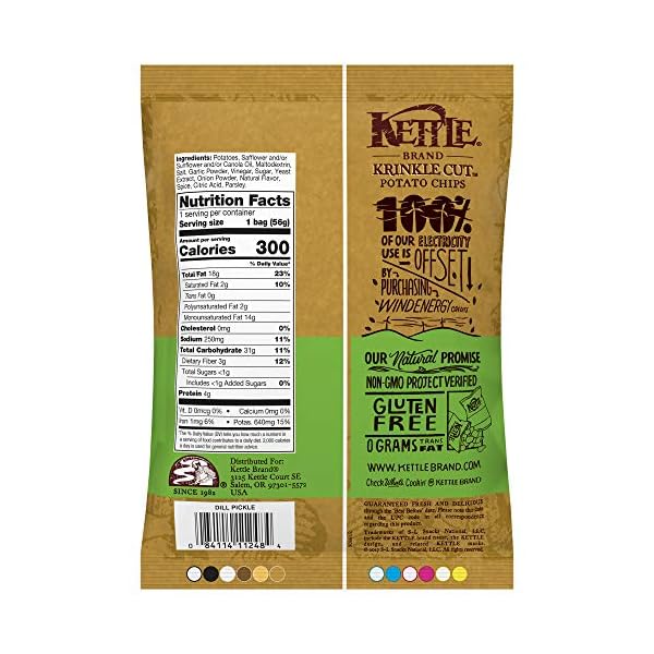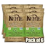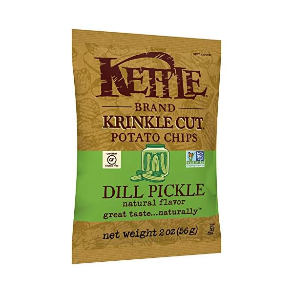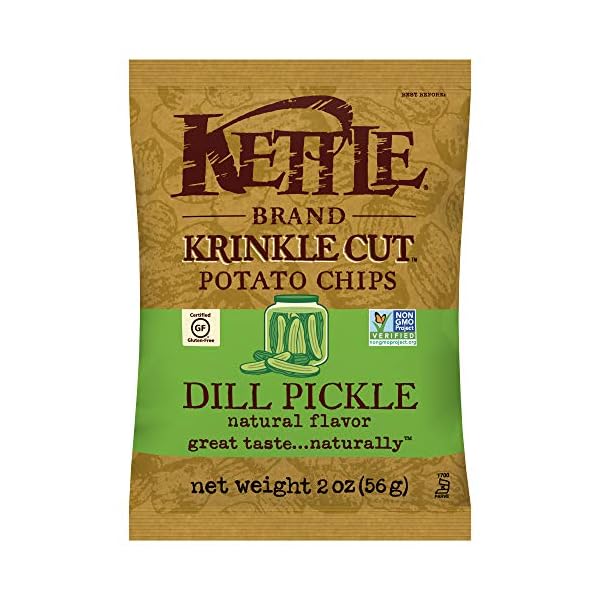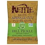 Like the tangy spears that inspired them, Kettle Brand Krinkle Cut Dill Pickle chips leave you with one thing to decide: In your sandwich or beside? The extra crunchy thick ridge cut chips offer the perfect balance of tang, dill, onion and garlic. Get the fresh, crisp taste of dill pickles in a chip that feeds your hungry soul. Hearty appetites demand snacks with substance. Product of U.S.A.